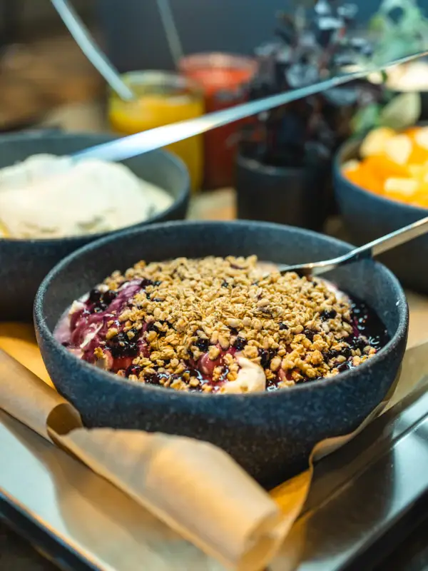 Ontbijt en vakantie horen gewoon bij elkaar. Bij aja Travemünde kun je de dag beginnen met precies waar je zin in hebt: knapperige broodjes en brood van de plaatselijke bakkerij, muesli, fruitsalade of kwark voor een lichte start en vers bereide eiergerechten van het live cooking-station. Plus koffie- en theespecialiteiten, water, sappen of warme chocolademelk. Met uitzicht op het water smaakt de ochtend net iets meer als vakantie.