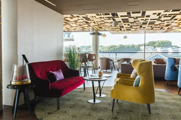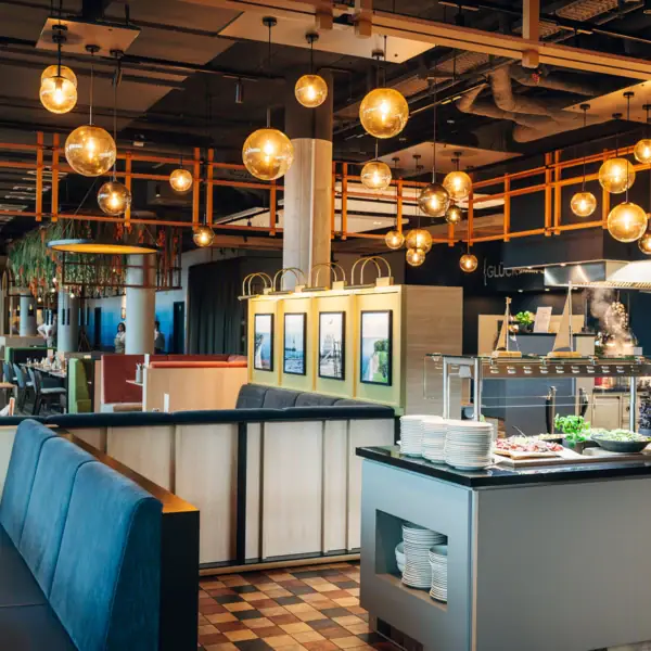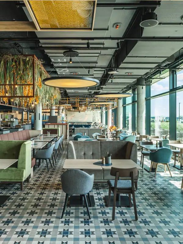 In het aja Travemünde restaurant kun je genieten van de variatie van het buffet en tegelijkertijd van het uitzicht op de schepen op de Trave en de promenade. Je kunt kiezen uit verschillende zitgedeeltes - soms heel dicht bij het water, soms wat rustiger. Vooral gezinnen voelen zich hier thuis, want er is een apart gedeelte met een aangrenzende speelkamer voor de kleintjes. Zo kan iedereen ontspannen eten.