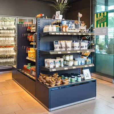 . Honger om middernacht of trek in iets zoets na het strand? Geen probleem! In onze 24/7 winkel bij aja Warnemünde kun je op elk moment snacks, drankjes en kleine vakantiehulpjes vinden. Of het nu 's avonds laat, 's ochtends vroeg of tussendoor is - hier kun je altijd krijgen wat je nodig hebt.
