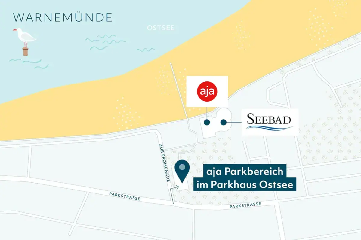 Het is eenvoudig: je vindt ons direct aan het strand in Warnemünde. Met de auto, de trein of zelfs te voet vanaf het station - je reis naar aja en de badplaats is kort en ongecompliceerd.